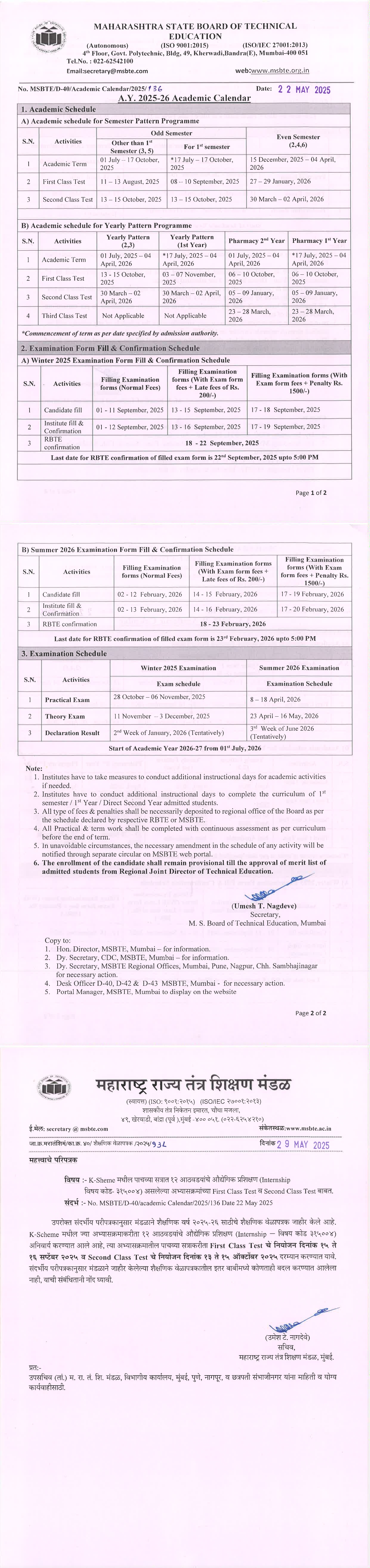 Academic Calender 2025-2026